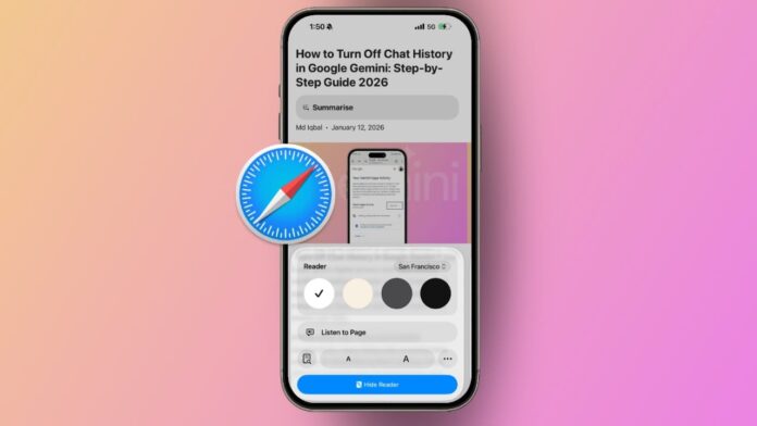 Safari now applies Reader Mode automatically. Every article from this website opens clean. You can disable this option anytime later. Visit the same website again.